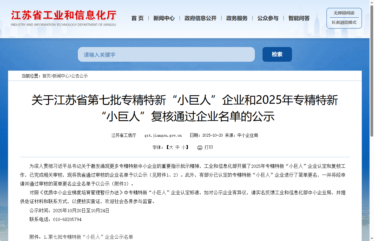 国家级专精特新“小巨人”企业,是“专精特新”中小企业中的佼佼者,也是江苏省乃至全国范围内,对专注于细分市场、创新能力强、市场占有率高、掌握关键核心技术、质量效益优的优质中小企业的最高认可之一。
